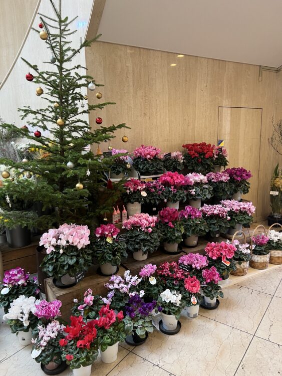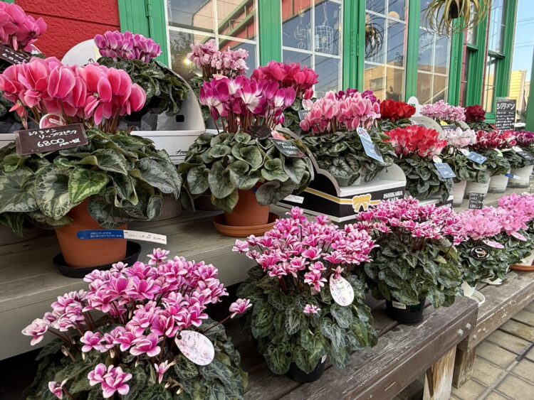 green roomの店頭には、この季節ならではのシクラメン、ポインセチア、シンビジウムをはじめ、写真に撮りたくなる冬の花が揃っています。