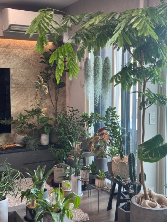 先日、マンションのリビングに植物をふんだんに取り入れたコーディネートをさせていただきました。