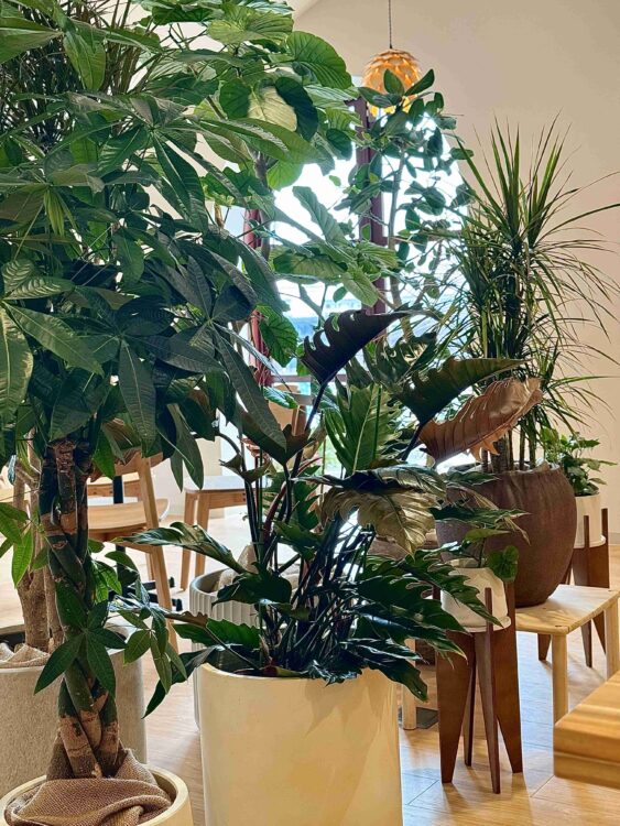 当社では、小牧市・名古屋市を中心に、カフェ・飲食店・店舗向けの植物コーディネート、観葉植物の定期メンテナンス、サブスク型グリーンサービスをご提供しております。